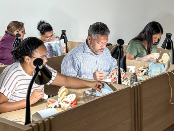 “É a primeira vez que realizamos um curso nesse formato, com o participante realizando o preparo do material e a restauração na hora, seguindo a demonstração feita pelo professor ali ao seu lado. Todos gostaram muito, tivemos um feedback bem positivo”, relatou Cláudia.