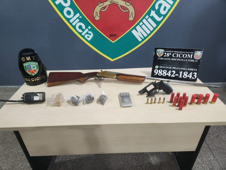 Dois homens, de 19 e 40 anos, foram presos e duas armas de fogo e porções de entorpecentes foram apreendidas, na tarde de quarta-feira (31), na comunidade Santa Luzia, localizada no bairro Puraquequara, Zona Leste de Manaus.