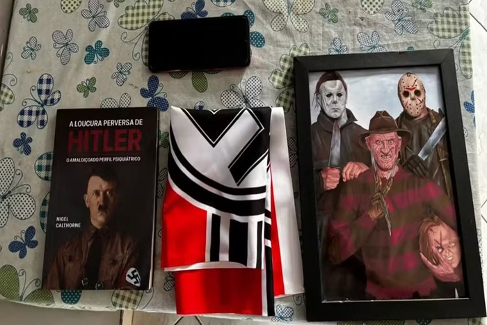 Os materiais neonazistas do adolescente foram apreendidos pela Polícia Civil no começo de setembro, mas só foram divulgados nesta última quinta-feira (26). Celulares, livros e bandeiras com a suástica foram encontradas na residência do jovem.