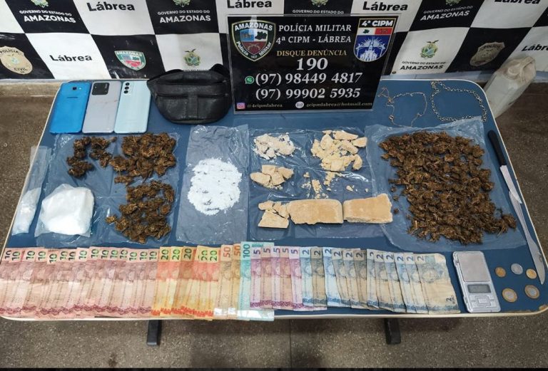Lábrea (AM) – Quatro homens, com idades de 24 e 25 anos, foram presos e um adolescente, de 14, foi apreendido por envolvimento com o tráfico de drogas, nesta sexta-feira (8), em Lábrea (distante 702 quilômetros de Manaus). A ação foi realizada pela Polícia Militar do Amazonas (PMAM), por meio da 4ª Companhia Independente de Polícia (CIPM), após denúncia anônima.